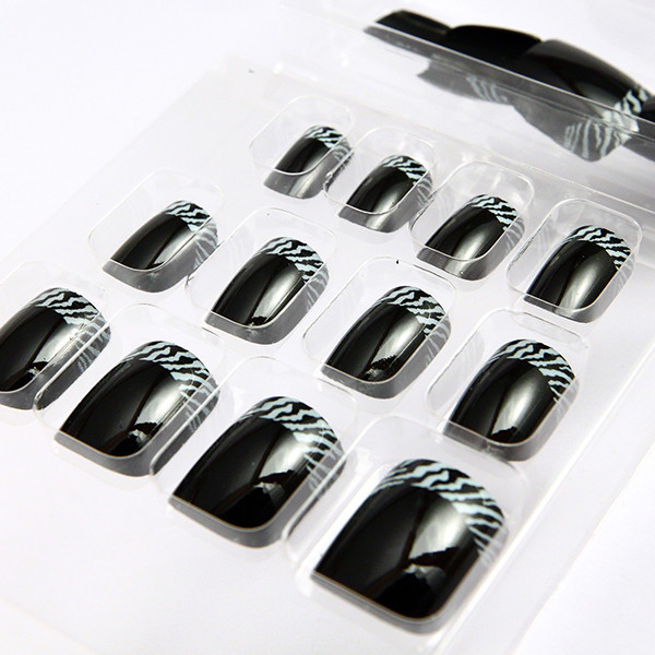 Black Zebra French Manicure Fake Nails , Printing adult nail tips Images |